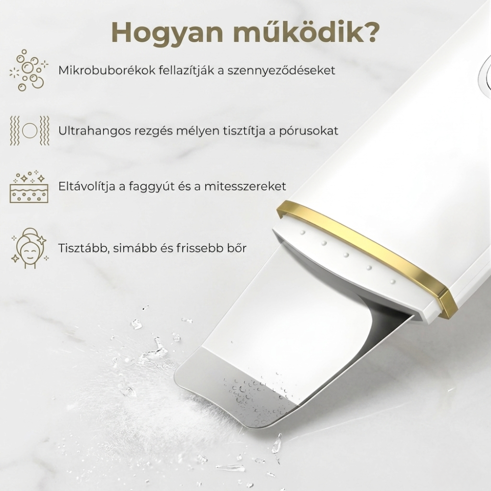 Az ultrahangos tisztítás gyengéden eltávolítja a szennyeződéseket és az elhalt hámsejteket.