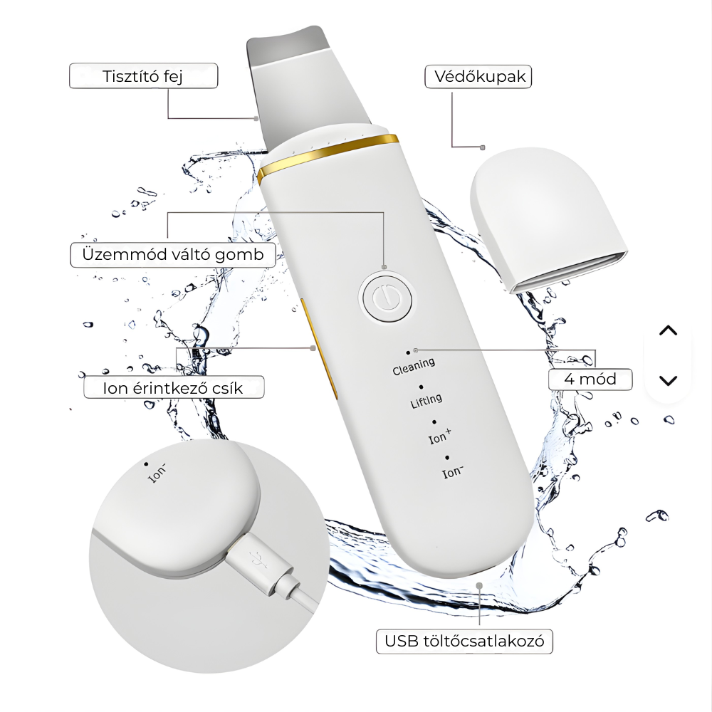 Az ultrahangos tisztítás segít eltávolítani a mitesszereket és a pórusokban lerakódott szennyeződéseket.